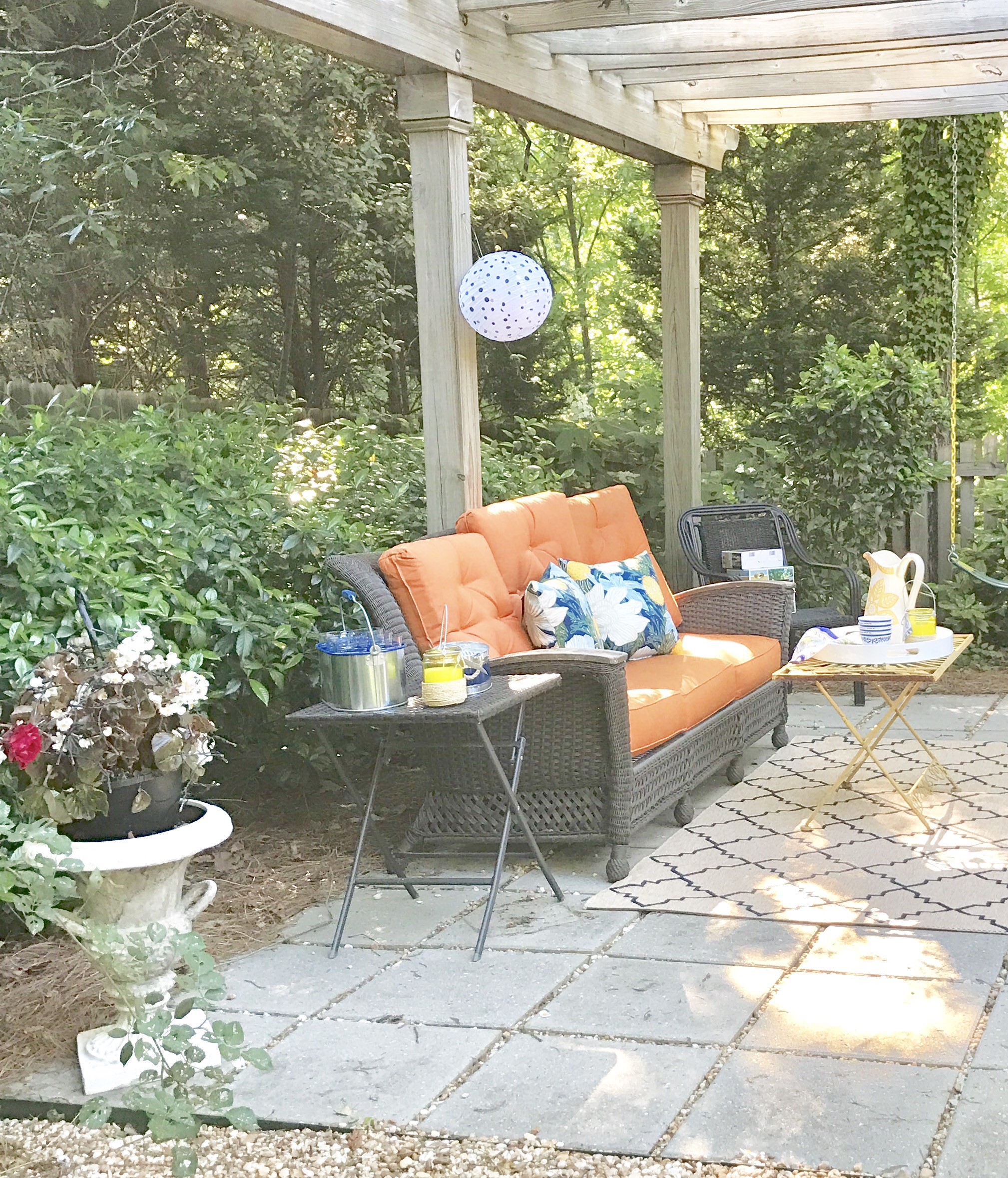Updating my mama’s sweet little pergola area for some extra outdoor living space – with my little one’s help of course. It’s starting to take shape. I’m so excited to add more twinkle ✨lights up, flowers, figure out an updated cushion color, and finish my DIY surprise for this space. So fun and loving it and will post the finished space. Gotta keep the swings for the babes. Hope to finish for Mother’s Day.