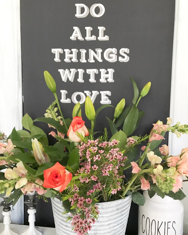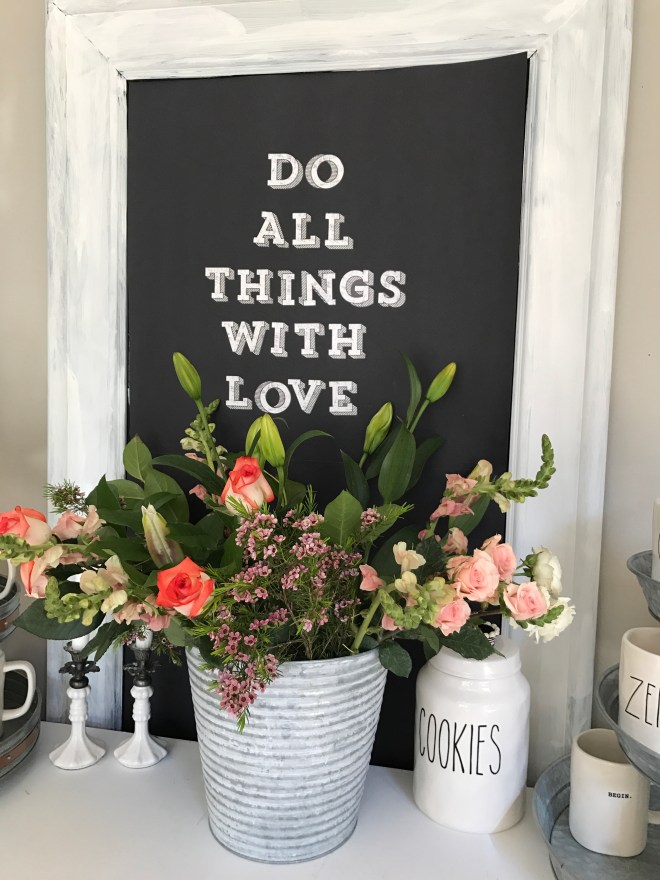So this chalkboard is my recent DIY huge floor mirror, previously black, turned chalkboard. In my next blog post, I will explain how I did it. And the letters are stickers…. mainly because I don’t like my handwriting.