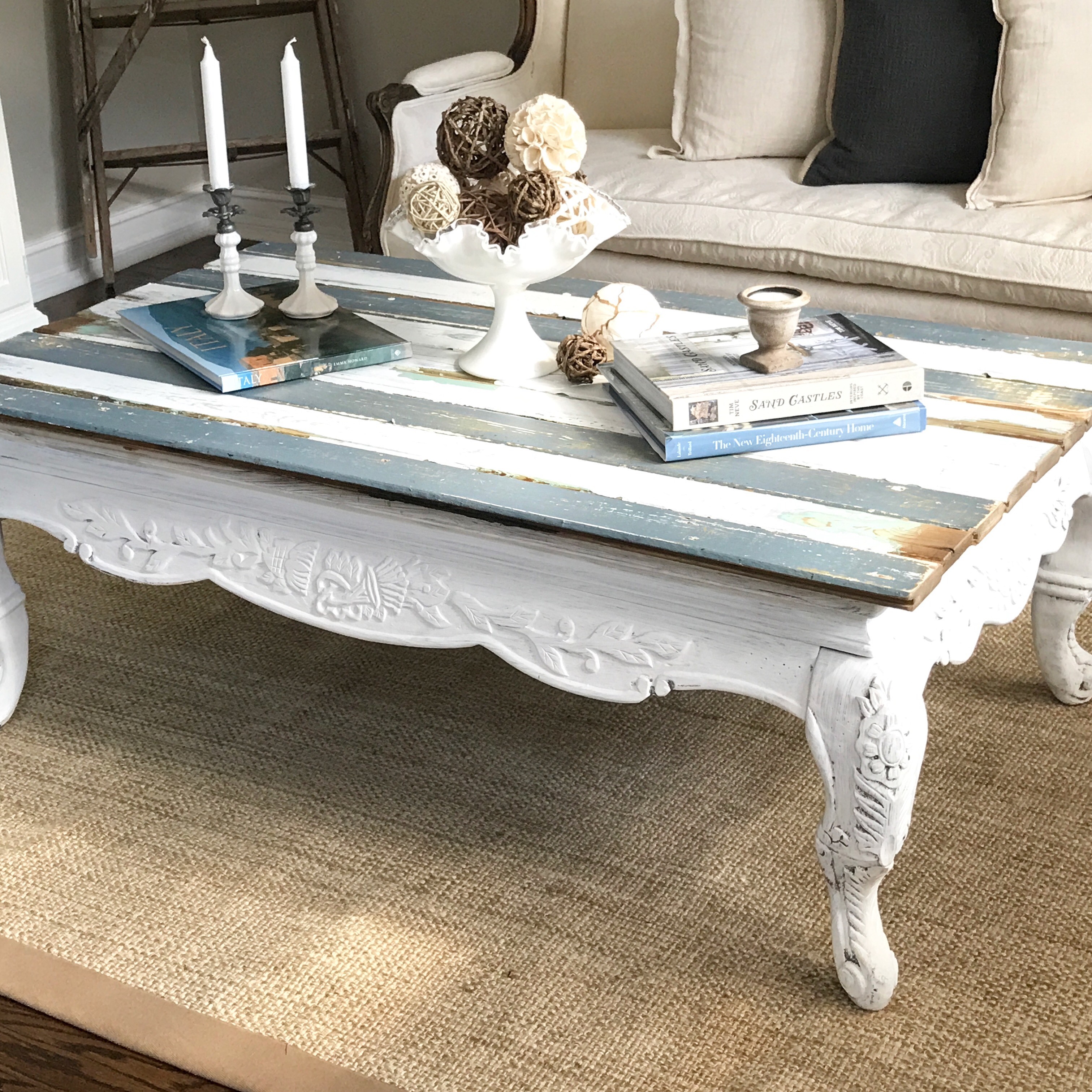 My fave find so far that finishes off an eclectic, casual, sunroom. This reclaimed wood coffee table is from North GA. If you are not familiar with Southern Exchange Market, definitely check them out. Haley was so kind and gracious – great clothing too!
