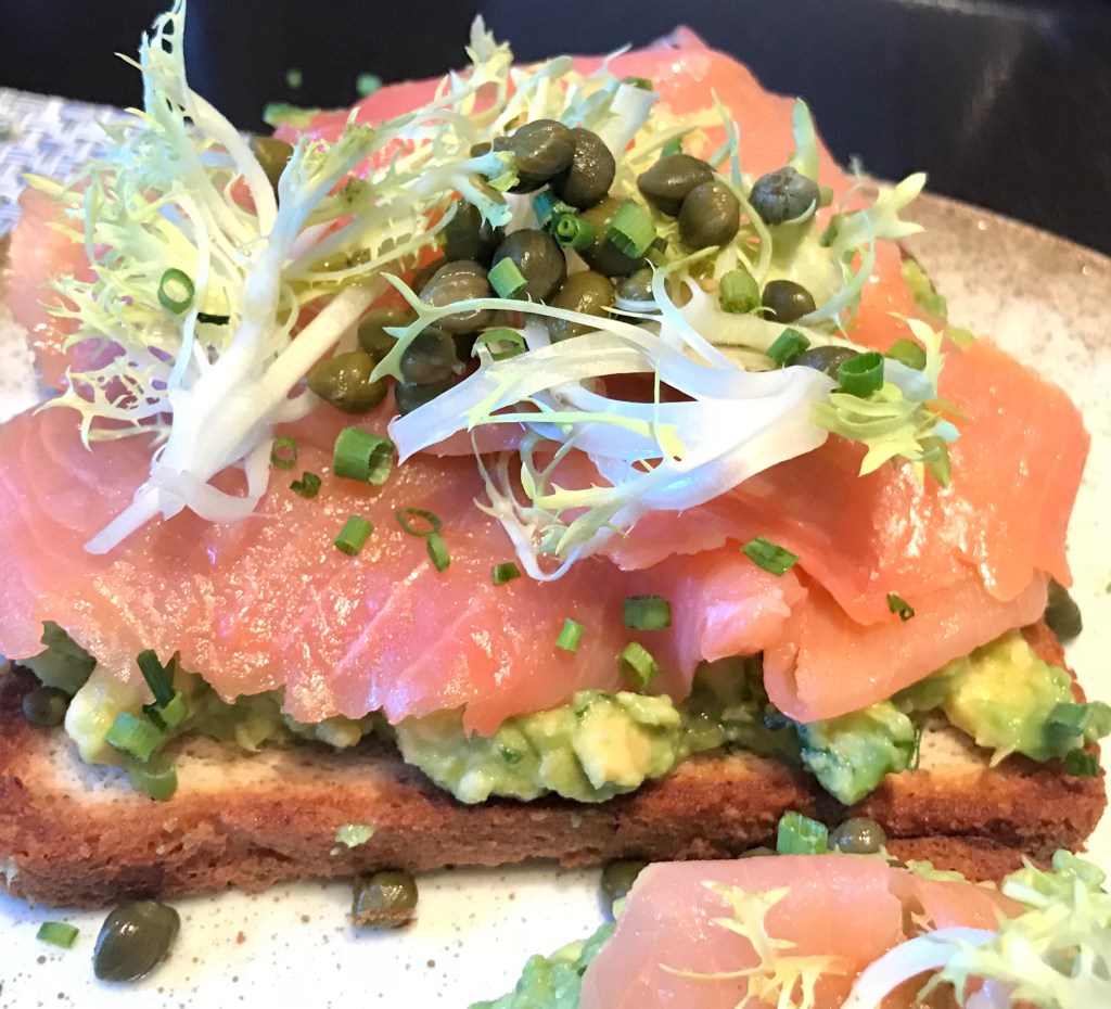 The point, I decided to combine my two food obsessions and lighten it up, and created an avocado and lox tostada! You get a great crunch for a lot less carbs, 7 per tostada, and calories than a bagel or toast. The result – absolute best eats ever! So, if you are wanting to cut down on bread, calories, gluten, insert a little tostada, get creative and pile high. Here’s my super simple recipe for my avocado and lox tostada – and I don’t worry about burning any toast. Enjoy!
