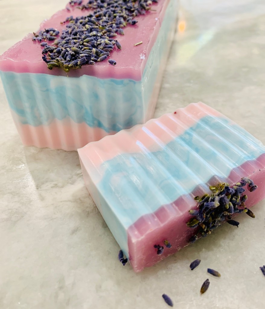 It’s all handmade, including the blend of soap, scents, colors, homegrown lavender, and even the labels. I enjoy that every aspect is a creative process and a design decision. Talk about endless possibilities, and so much fun! I may begin selling these, but for me it isn’t about the sale, that is just a plus if I decide to do it. (And I don’t look forward to managing a small business, I already work full time, in a complex and demanding job, and have a family. I guess technically though, maybe it’s already started with a few neighborhood orders coming in – EEEEK!)