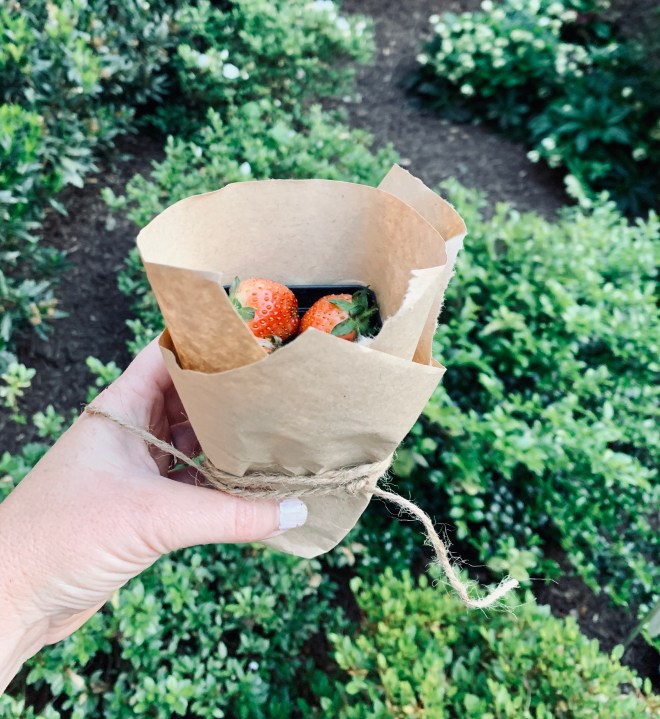 These organic strawberries in the garden again this year are berry crazy! Hah… we’ve got a lot of them. This is the third year for these berries and they best year so far! Below is a quick list of simple things you can make with strawberries (and I’ve got lavender and Basil too). I also create some cute strawberry Blooms ‘n Bundles for neighbors, friends and family (pictured). They love’em!